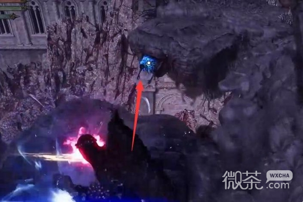 2、来到图中所在位置后,玩家需要攻击蓝色闪光位置的机关。
