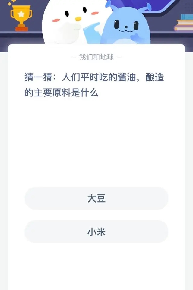 2023支付宝蚂蚁庄园10月23日的题目已经更新了,今天的题目为:猜一猜:人们平时吃的酱油,酿造的主要原料是什么?正确答案是什么,可能很多小伙伴可能还不太清楚。下面就为大家带来了正确答案分享,希望能帮助到你。