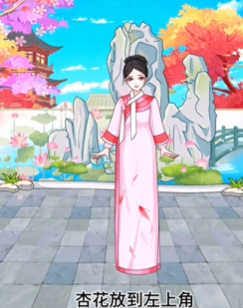 1、场景一的道具是:小主衣服,杏花(移到左上角),秋千,萧,然后移动人物到秋千上。