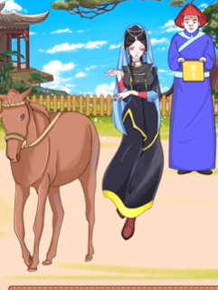 2、场景二的道具是:头纱,苏公公,驯兽服,马鞭,让人物坐在马背上。
