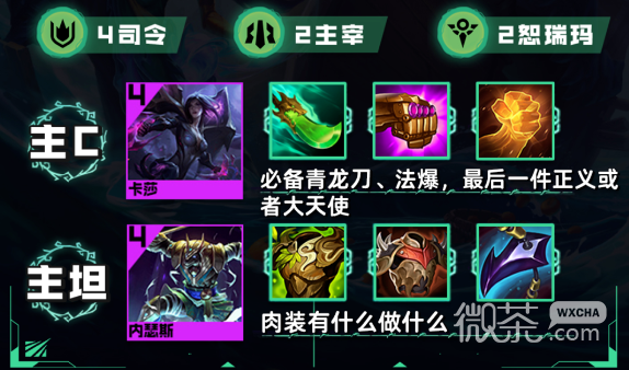 2、阵容羁绊:4司令2主宰2恕瑞玛2挑战2祖安