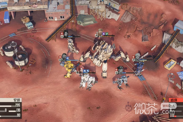 按照前面猛打传动的方式攻击泰坦,差不多第三回合一开始简单攻击一下它的传动装置就已经损毁了,这个时候除了格兰特的回合是维修血量过低的机兵外,剩下所有的机师全部攻击目标泰坦机兵。