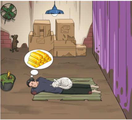 2、先向下滑动帘子,拖动金条到大嫂、墙上的画等