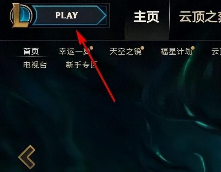 1、首先在电脑中打开英雄联盟游戏,点击左上角的PLAY,进入游戏模式选项。