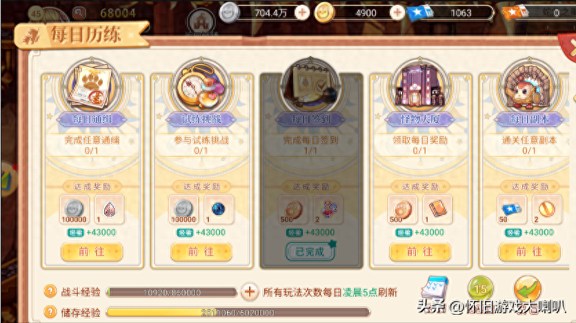 而另一个大的经验获取来源就是“玩法”了,会在每天凌晨5点刷新。建议玩法到第二天再去做,这样可以直接升到35级。