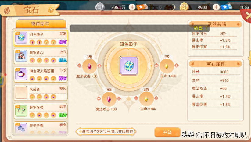 法师:两个魔法宝石,一个生命宝石,一个防御宝石;