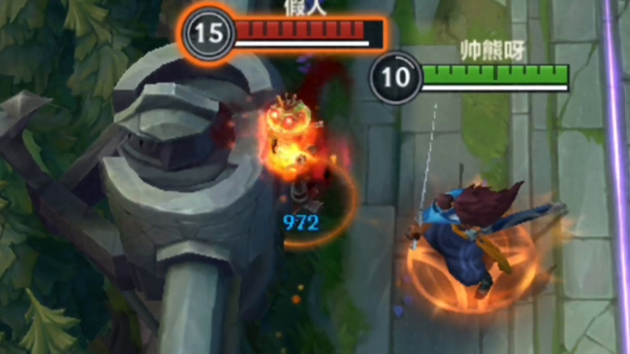·我方中路防御塔正在受到对小兵的伤害提升150%。可以看到,炮车的血量为908。同样地,该装备也提高了对野怪的伤害。这个被动可以同时作用于所有目标。对于野怪,该装备最多每秒造成125点伤害。如果将该装备与日炎斗篷配合使用,就可以形成双重燃烧效果。