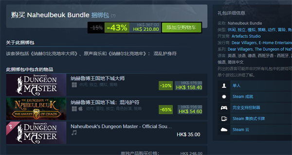 3、最豪华的捆绑包是将地下城大师和混沌护符的游戏本体+全部DLC一起售卖,一共六件需要297元,只能说挺会捆绑销售的。