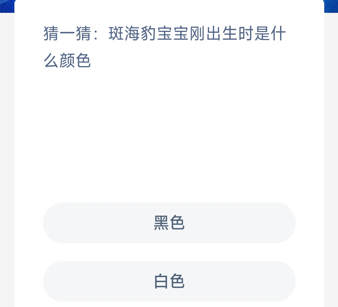 2023支付宝蚂蚁海洋11月16日的题目已经更新了,今天的题目为:猜一猜斑海豹宝宝刚出生时是什么颜色?正确答案是什么呢?可能很多小伙伴可能还不太清楚正确答案是什么。下面就为大家带来了正确答案分享,希望能帮助到你。