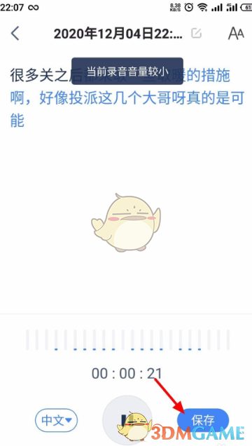 3、这样就会将说的话,自动转换成文字了,点击保存;