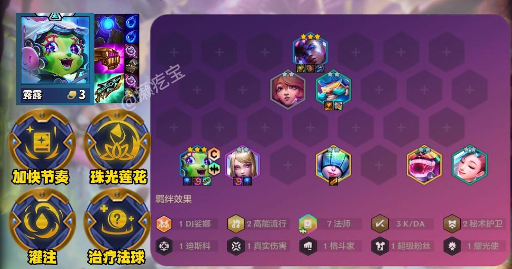 羁绊:1DJ娑娜、2高能流行、7法师、3K/DA、2秘术护卫