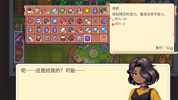 7、罗文,职业杂货老板,喜好物品气球、护身符和藏宝图,讨厌的是暗物质和毒药,常见于杂货店。