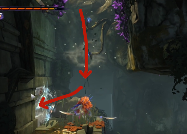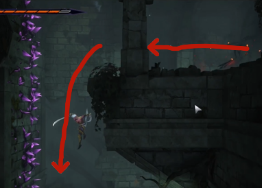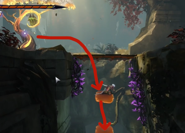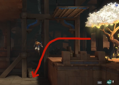 2、到达目的地之后,向左走跳到下面的平台,再从平台上继续往下跳。