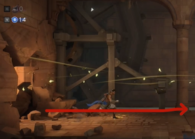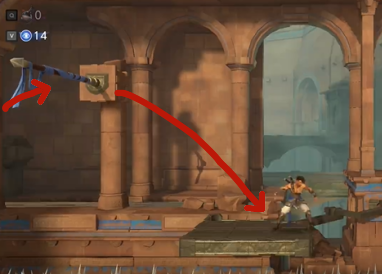 4、朝机关射箭让两个平台合在一起慢慢通过,注意不要跳到刺上。