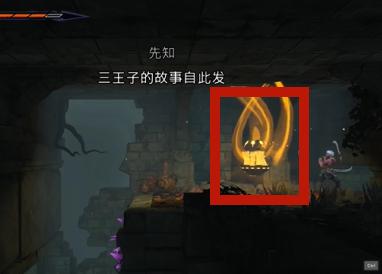 5、最后来到右边的高台上,攻击发光物即可获得一个精灵沙瓶。
