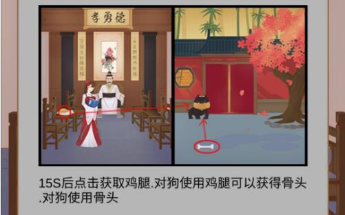 2、然后到后院把鸡腿给狗狗吃了得到骨头。