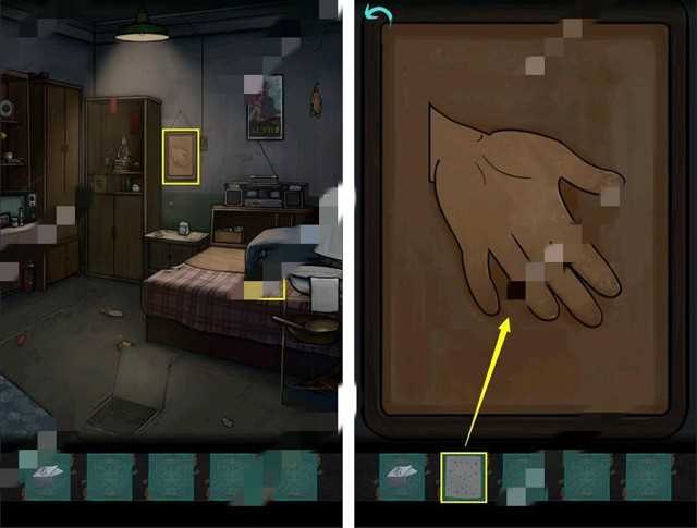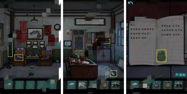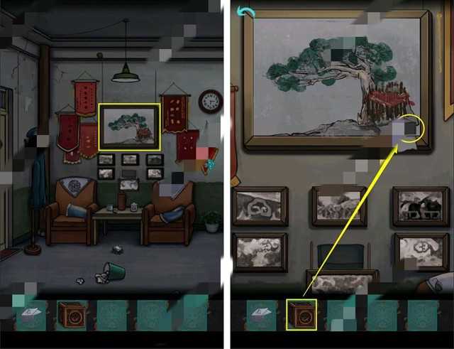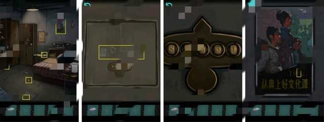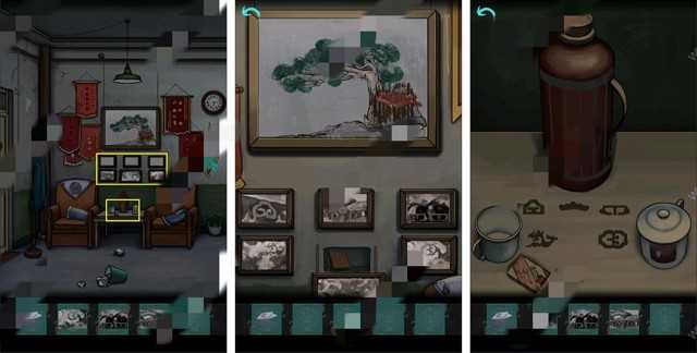 3、将3张相片放入墙上相框中,根据桌面图案,调整照片位置,获得游戏盘。