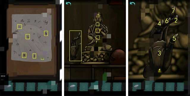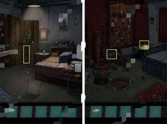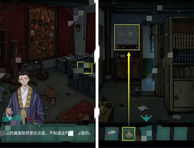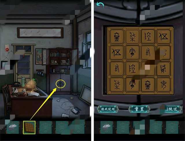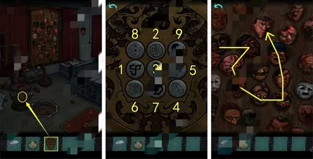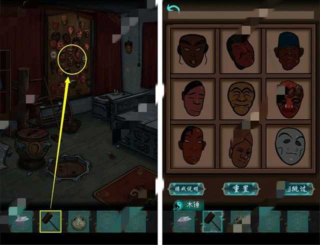 14、将嗤笑面具放入水缸凹槽,按顺序,按下面具图案和眼睛的方向。