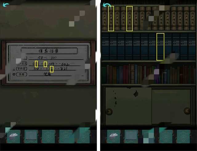 17、从左至右,按标签上的红点抽取第一排第二本,查看日记。从第一排第五本开始,拿钥匙。第二排抽出第八本,按下按钮。