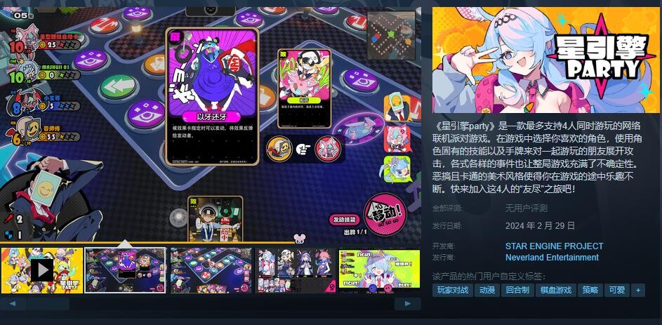 1、星引擎party是一款卡牌因素的骰子游戏,该游戏支持4人游玩。