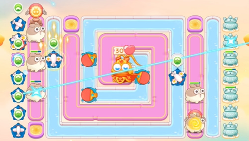 5、越到后面的兔子速度也是越快的,所以中间尽量多放上几个雪球。