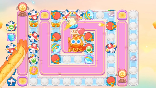 1、开局可以使用这个飞机来清理道具,然后清理出空位的时候就可以补充炮塔。