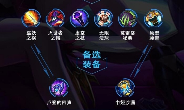 巫妖之祸、灭世者之帽、虚空之杖、无限法球、莫雷洛秘典、原型腰带。