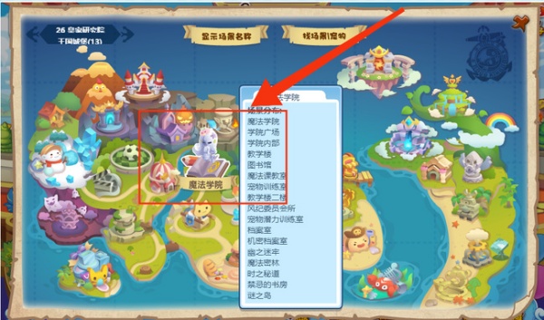 先打开游戏的大地图,找到魔法学院点击直接传送过去。