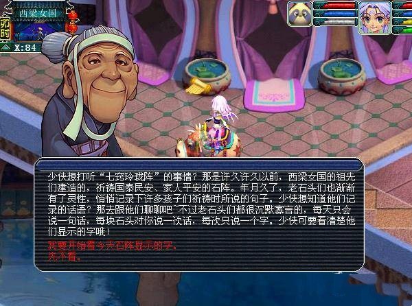七窍玲珑阵的答案是一个句子,需要找慕容婆婆破解。