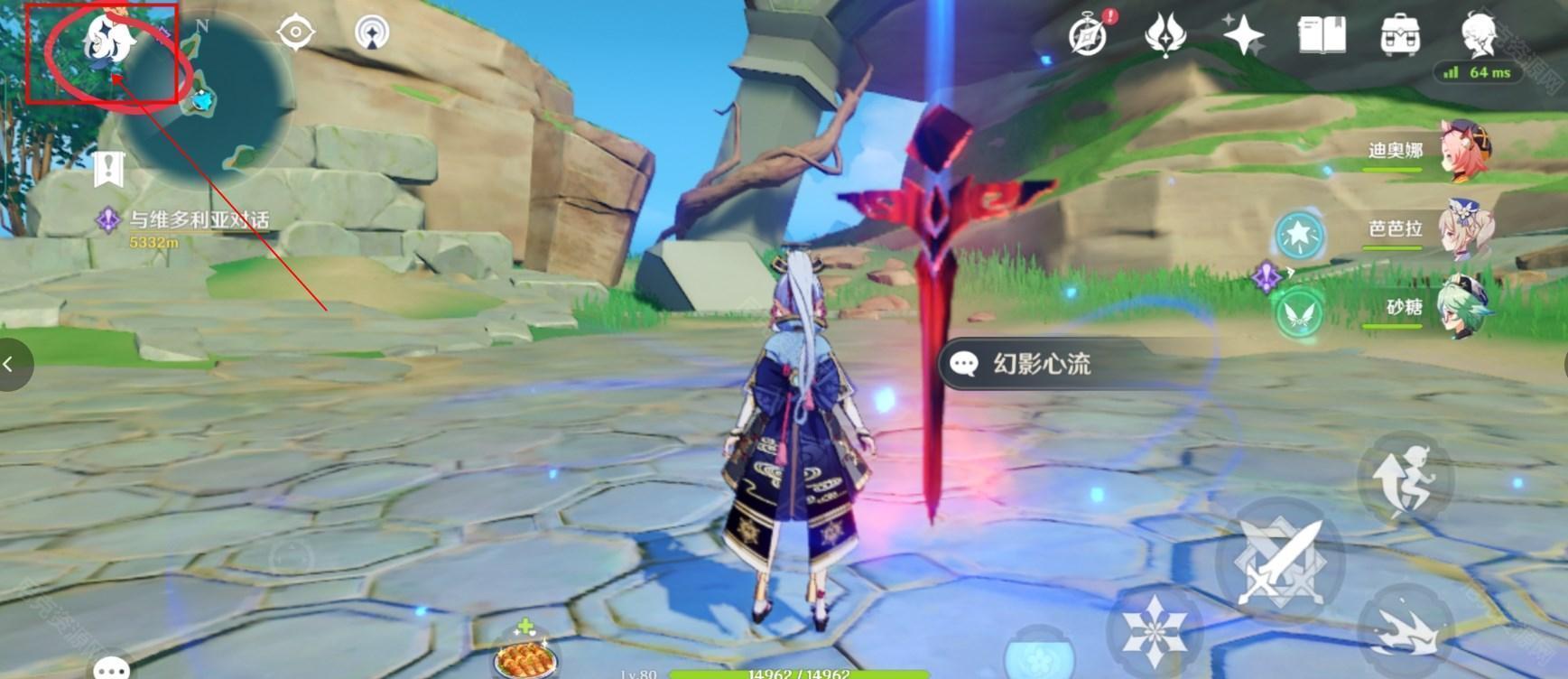 1、玩家们进入游戏点击左上方【派蒙】标志。