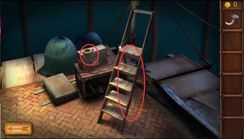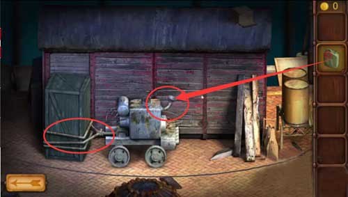 点击灯下的铁箱,进行游戏,获得油箱和绳索;