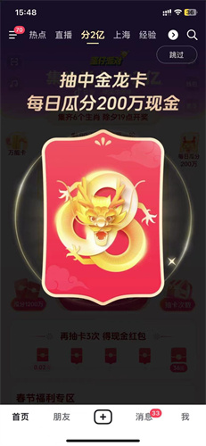 2、我们可以通过每天抽卡,有机会抽中金龙卡,每天每天20:00开奖,多张金龙得多倍奖励瓜分200万。
