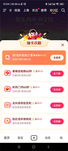1、每天抽卡的机会只有三次,集齐生肖卡之后,晚上6点即可瓜分1200万。