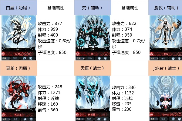 冥龙是肉盾,负责抗伤,天枢和joker作为战士,既能打又能抗。