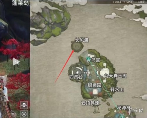 2、达到蓬莱岛后前青鸟宫方向走,走到青鸟宫的边缘。