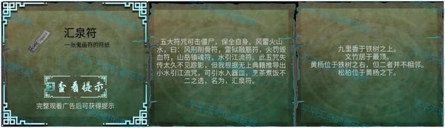 五、随后点击书本,获得符箓【汇泉符】以及一些重要提示
