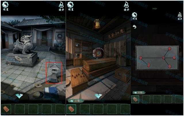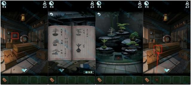 十一、开启正屋后,拿到盆栽,撤出房间,来到假山上,放入盆栽,再根据之前的提示,挪动盆栽的位置,随后获得八卦盘,之后再来到棺材的凹槽处,放入八卦盒。