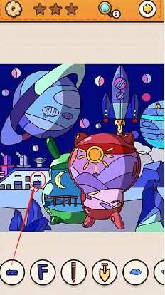 1.铅笔状物品在屏幕左上方星球上,同色同形状非常容易混淆。