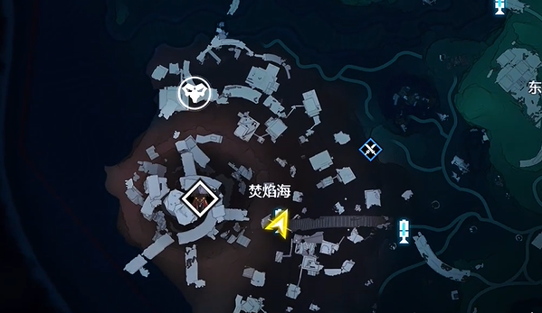 1、传动到焚焰海的中心信标处,接着一只往左上角走来到下图位置。
