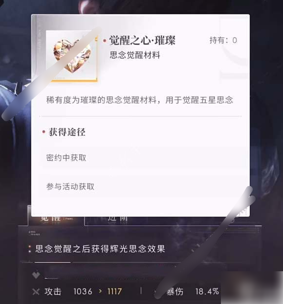 1、觉醒之心是五星思念觉醒到80级时需要用到的材料,这个材料目前只有密约和不定时的运营活动能拿到。