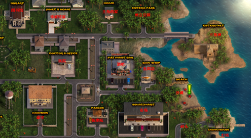 1、首先这个房间在医院的区域里,是在画面中的左上角的一个房间。