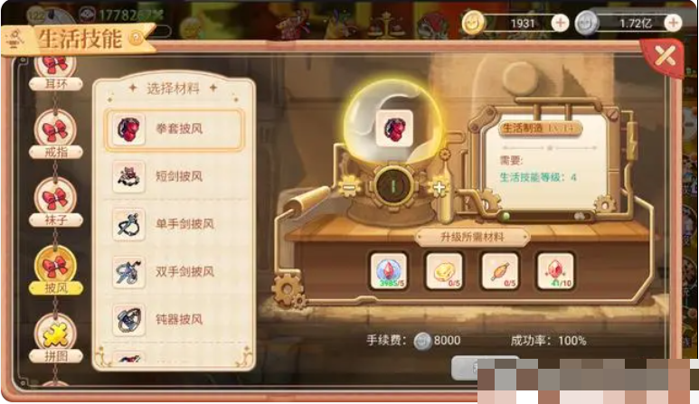 当生活技能等级达到要求就可以制作需要的各种道具以及装备了。例如生活技能4级可以制作初级的披风了,生活技能等级达到8级可以制作精炼披风。