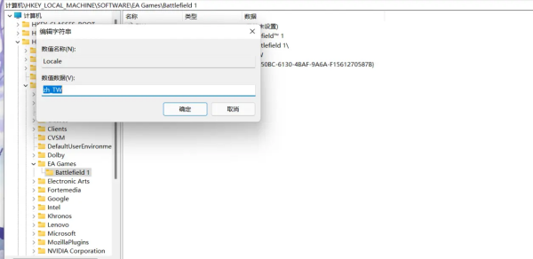 3、具体位置在:计算机HKEY_LOCAL_MACHINESOFTWAREEA GamesBattlefield 1。