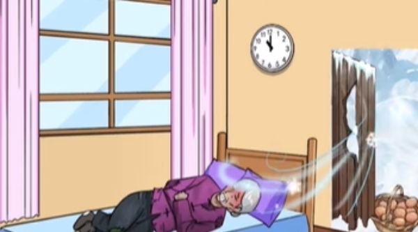 点击漏风的门,打开后发现外面有一篮子鸡蛋,用钱拖动到门和鸡蛋上面。