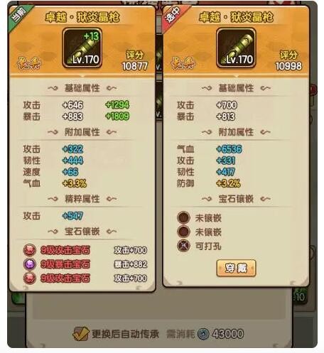 图一:更换装备查看装备属性对比