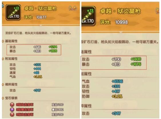 图二;同样精炼13不同基础属性,精炼加成不同
