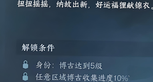 当您的身份等级提升至第五级并成功收集到10%的物品时,恭喜您已经成功解锁了福狸大师这个特殊角色。