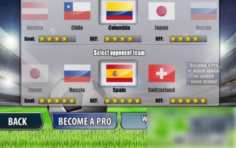 2、接下来选择自己喜爱的球队进行游戏,不同球队的进攻防守能力都不尽相同。