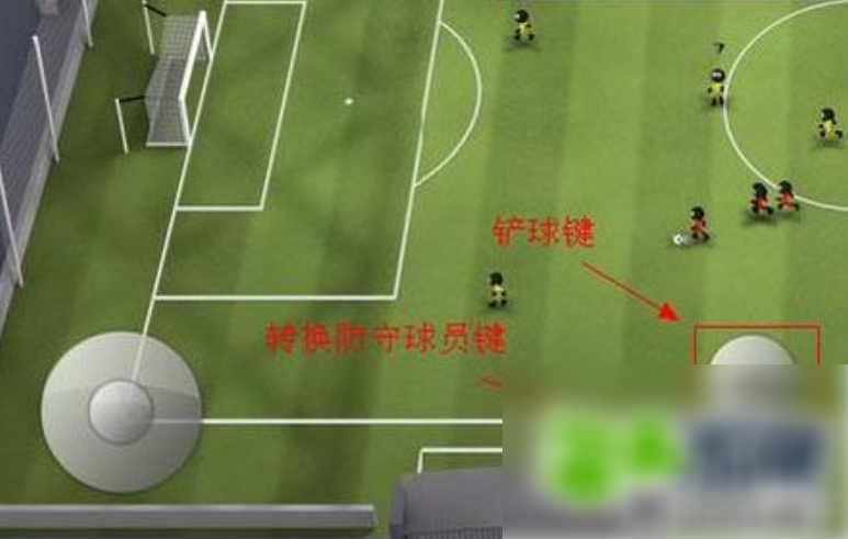 当小伙伴们为防守方时,右下角的两个按钮会自动转换为铲球按键和转换防守队员按键。当小伙伴们瞅准时间的时候,可以果断按下铲球键进行拼抢。