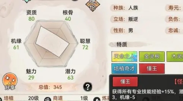 且玩家在选择的时候还需要着重把关弟子的聪慧属性,这是该弟子最重要的属性。